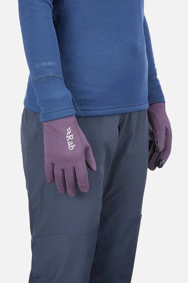 Když stoupáte vzhůru a výškové metry na túře přibývají, ruce začínají zábnout. Ani dotyk se studenou skálou už není příjemný. Natáhněte si tenké rukavice Rab, které se hned postarají o mnohem lepší pocit. A kvůli focení je sundávat nemusíte. Vodivý palec a ukazováček si s dotykovými displeji telefonů a foťáků totiž skvěle rozumějí. Rychleschnoucí tkanina Polartec® Power Stretch® Vodivý potisk ukazováčku a palce pro ovládání dotykových displejů Použitelné samostatně nebo jako izolační vrstva pod teplejší rukavice Úzká konstrukce s lycrovým lemem
