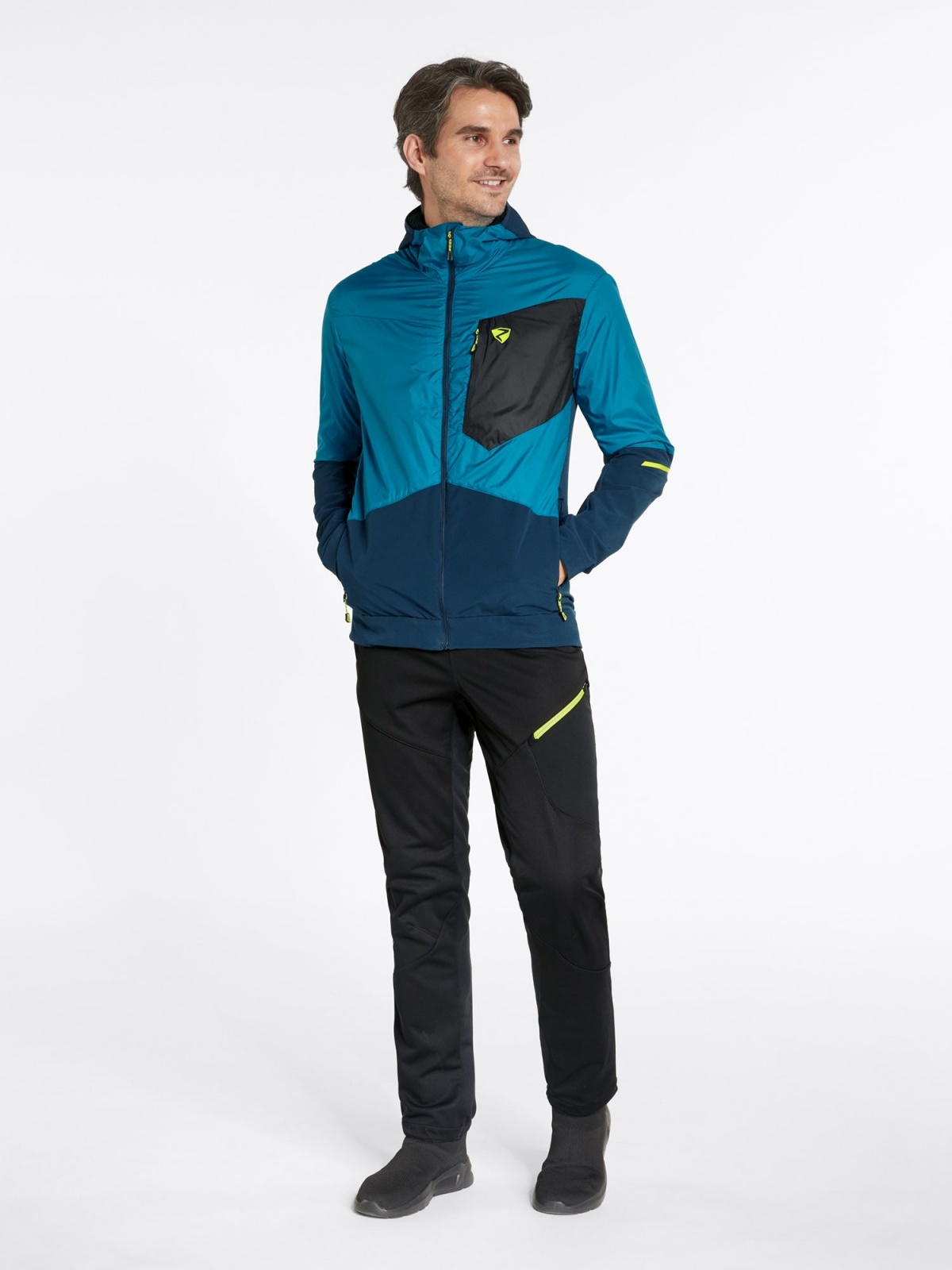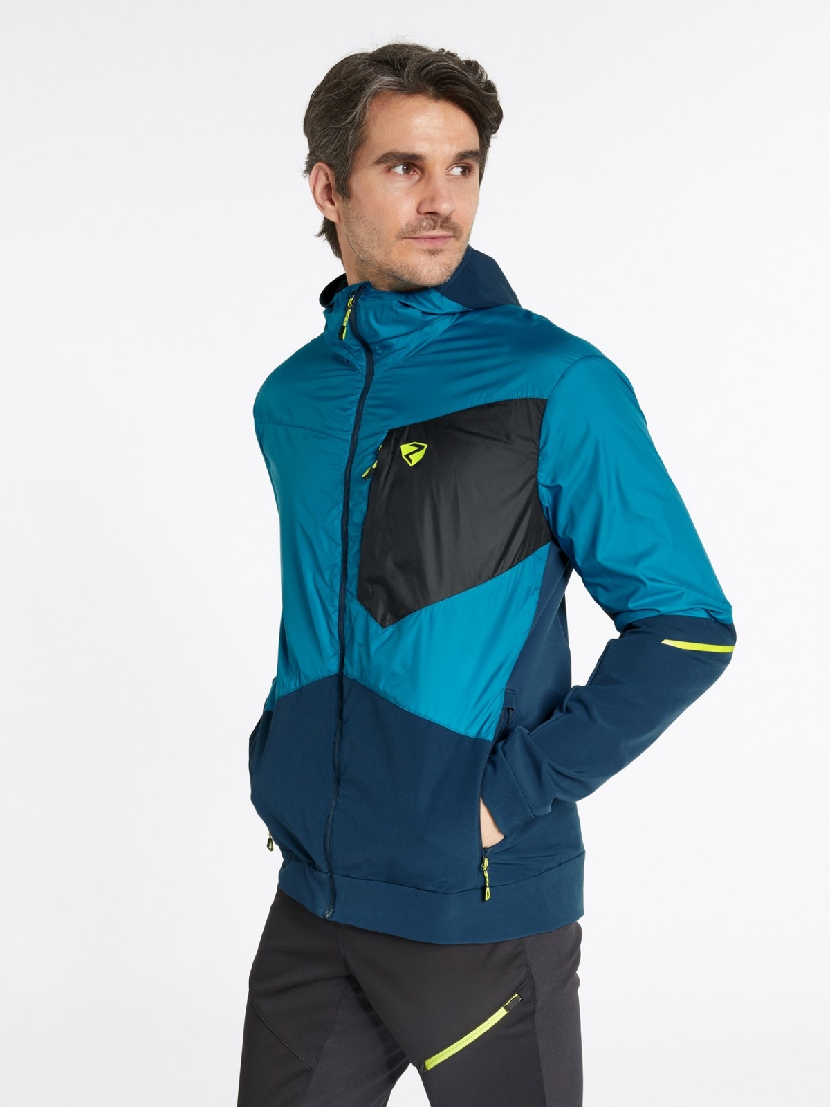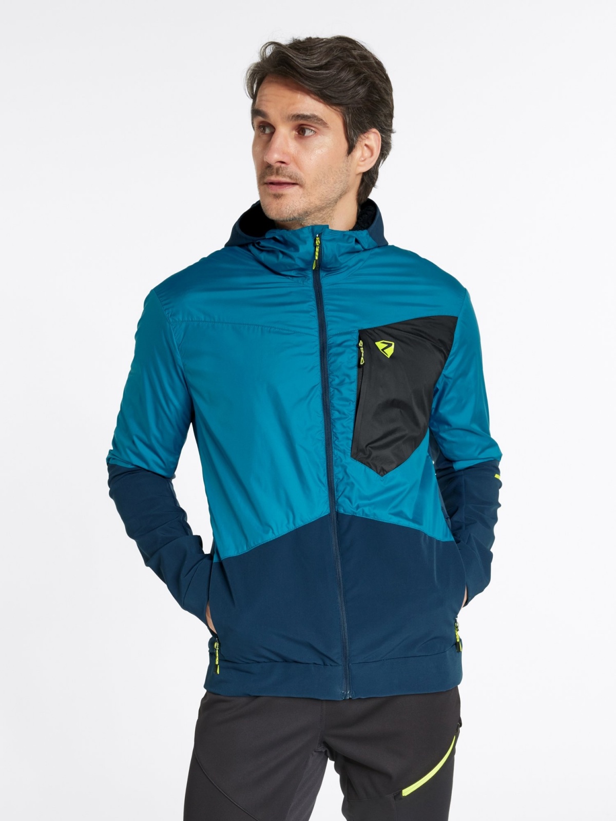 Pánská aktivní bunda ZIENER NIKOLO MAN s ZIENER WEATHERSHIELD, vyrobená z větru a voděodolných materiálů, zajišťuje vynikající funkčnost a ochranu v mírném dešti, větru a sněhu. Je vybavena malými poutky pro připevnění k poutkům na opasek, což znamená, že se bunda při výstupu nebo nošení batohu nepohne z místa. Díky vnitřní vložce PrimaLoft® ACTIVE kombinuje elastická bunda tepelné výhody izolace s všestranností funkčních tkanin. Díky tomu je hřejivá a zároveň vysoce prodyšná. Podšívka obsahuje recyklovaný materiál – pro šetrný přístup k životnímu prostředí. Speciální vsadky na zádech zajišťují lepší pohyblivost a ventilaci. Bunda neobsahuje PFC díky své voděodolnosti šetrné k životnímu prostředí. K funkčnímu komfortu přispívají technické detaily jako pevná kapuce, dvě boční kapsy na zip a jedna náprsní kapsa. Aktivní bunda je dodávána s reflexními prvky. Je ideální pro pohybově náročné sporty, kde je vyžadována maximální prodyšnost.