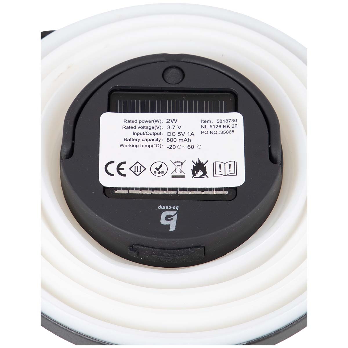 Velmi kompaktní závěsné svítidlo se solárním panelem. Tuto lampu lze složit extra naplocho, protože silikonové pouzdro lze zcela složit dohromady. Poskytuje příjemné světlo prostřednictvím teplého bílého LED osvětlení se 4 úrovněmi osvětlení. Vestavěnou Li-ion baterii lze nabíjet solární energií nebo dodávaným USB kabelem. Obsahuje karabinu pro zavěšení lampy například na slunečník nebo stan. Velmi kompaktní závěsné svítidlo se solárním panelem. Extra plochý skládací díky silikonovému pouzdru. Teplé bílé LED osvětlení se 4 úrovněmi osvětlení. Vestavěnou Li-ion baterii lze nabíjet solární energií nebo dodávaným USB kabelem. Obsahuje karabinu.
