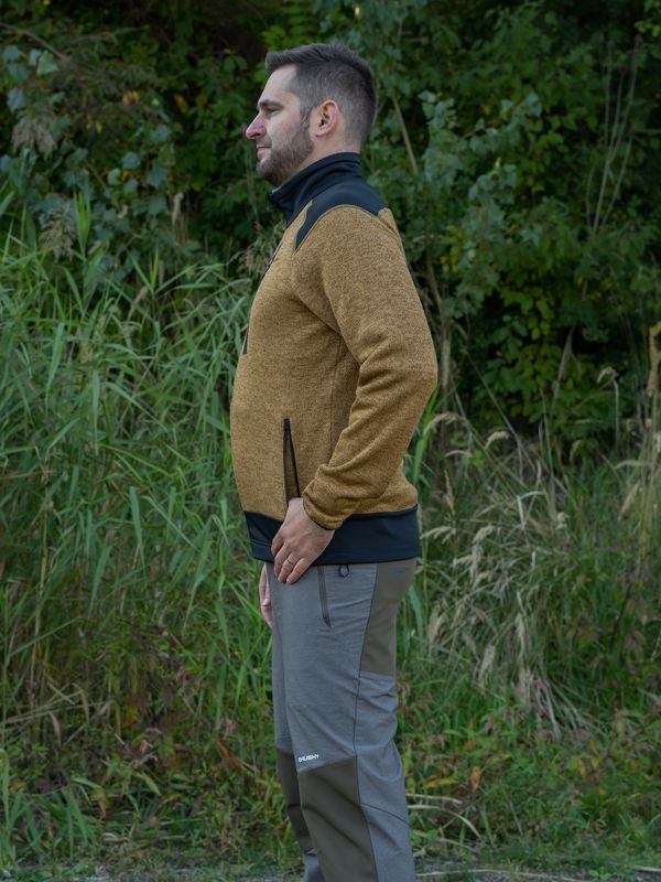 Silnější pánský svetr Alan M se zipem ke krku a náprsní kapsičkou na drobnosti zahřeje i ty největší zmrzliny. Kvalitní a měkký materiál ti zajistí dostatečný tepelný komfort. V chladném počasí je fajn jako hřejivá druhá vrstva, za mírnějších podmínek ho klidně obleč i jako svrchní díl. Hřejivý úplet THERM-COMFORT SWEATER LOOK počesaný z rubové strany pro výbornou tepelnou izolaci. Prodyšnost a pružnost materiálu pro pohodlí při pohybu.