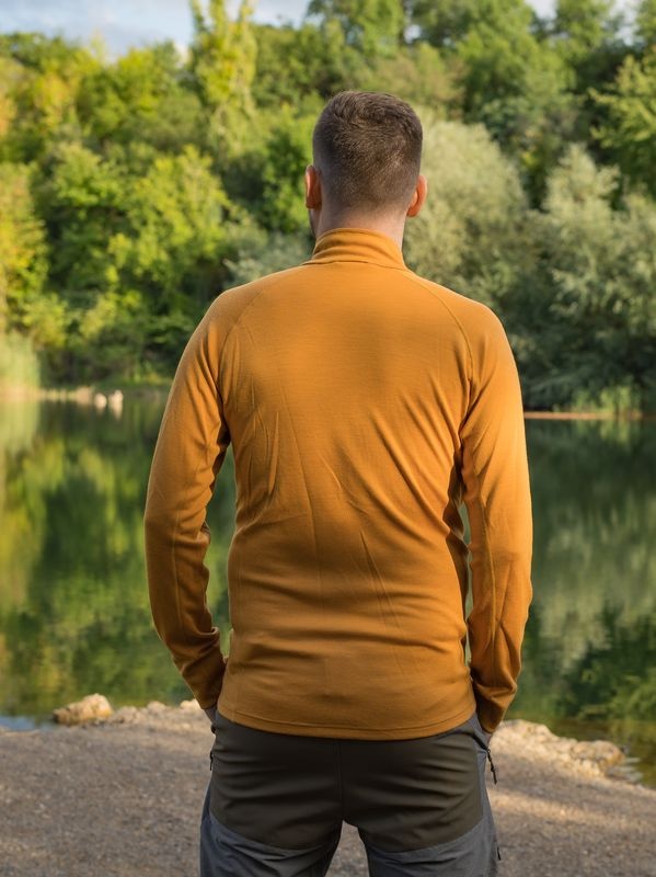 Pánská merino mikina na zip Alou M je skvělý funkční kousek pro nošení po celý rok do všech podmínek. Merino je přírodní termo materiál vyrobený z ovčí vlny. Je vhodný i pro alergiky a má spoustu skvělých vlastností. Udržuje tělesnou teplotu. V zimě zahřeje, v létě mírně zchladí. Je perfektně prodyšný. Skvěle odvádí vlhkost od těla, přičemž díky struktuře vlákna nemění izolační vlastnosti, takže ani vlhké nestudí. Přirozená antibakteriální vlastnost eliminuje zápach.