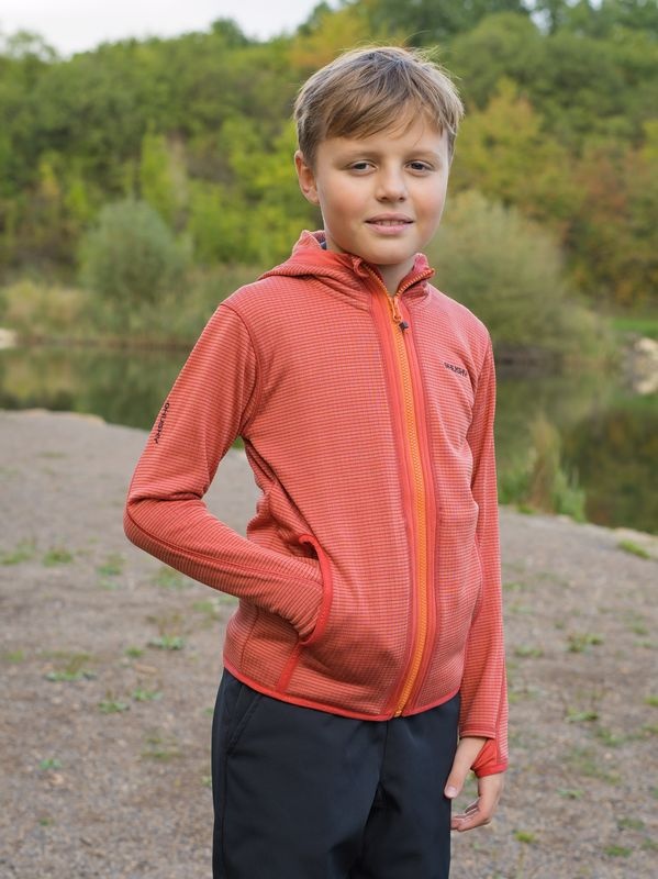 Dětská funkční mikina s kapucí na zip je ideálním parťákem na zimní koulovačku nebo lyže. Model Artic Zip K je vyroben z kvalitního materiálu, který je lehký, prodyšný a zahřeje i za chladného počasí. Pohodlný střih nijak neomezí v pohybu i během sportu nebo dalších outdoor aktivit zaměřených na výkon. Hřejivý prodyšný materiál S-Therm Checked Plus počesaný z rubové strany pro pružnost a vysoké pohodlí při pohybu. Na dotek velmi příjemný materiál se snadno udržuje. Finální antibakteriální úprava a snadný odvod vlhkosti od těla.