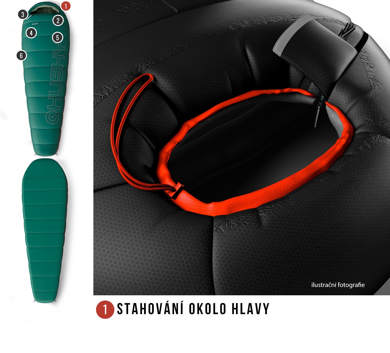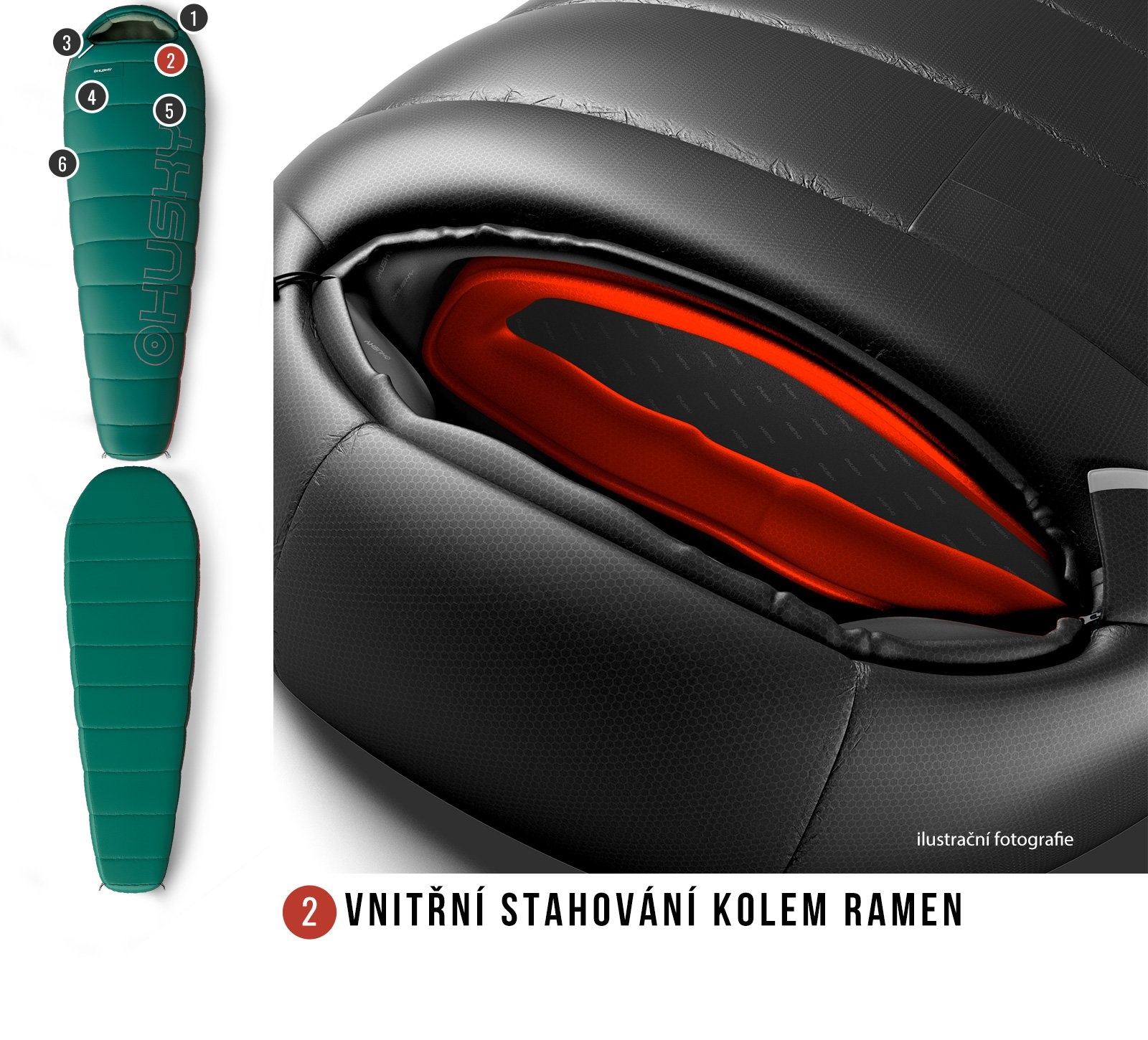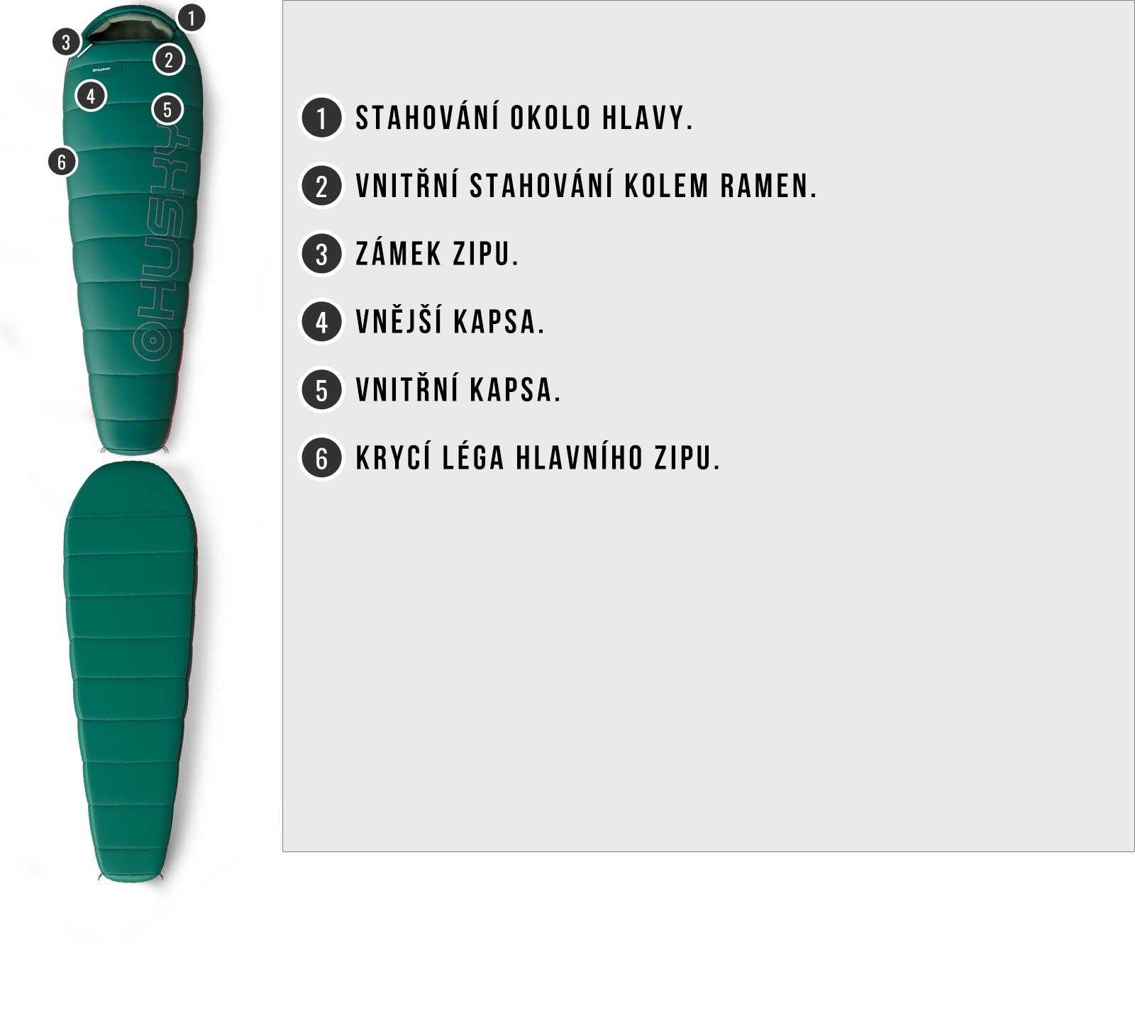 Husky Musset Short -3°C zelená Ultralehký třísezónní zkrácený spacák