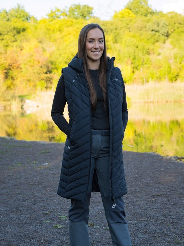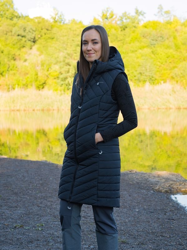 Dlouhá dámská prošívaná vesta s kapucí NAPI L je kousek, který ti v šatníku nesmí chybět. Pohodlná a zateplená vesta s podšívkou a membránou Husky Tech 7 000 tě bude doprovázet na procházkách městem i při různých outdoorových aktivitách. Vlastnosti: Prodyšný a voděodolný materiál HUSKYTECH 7 000 s membránou s vodním sloupcem: 7 000 mm H2O a prodyšností: 5 000 g/m2/24 h. DWR vodoodpudivé vnější ošetření vrchní vrstvy materiálu oděvu zabraňuje prosakování vlhkosti a voda tak okamžitě odtéká po povrchu ve formě kuliček.