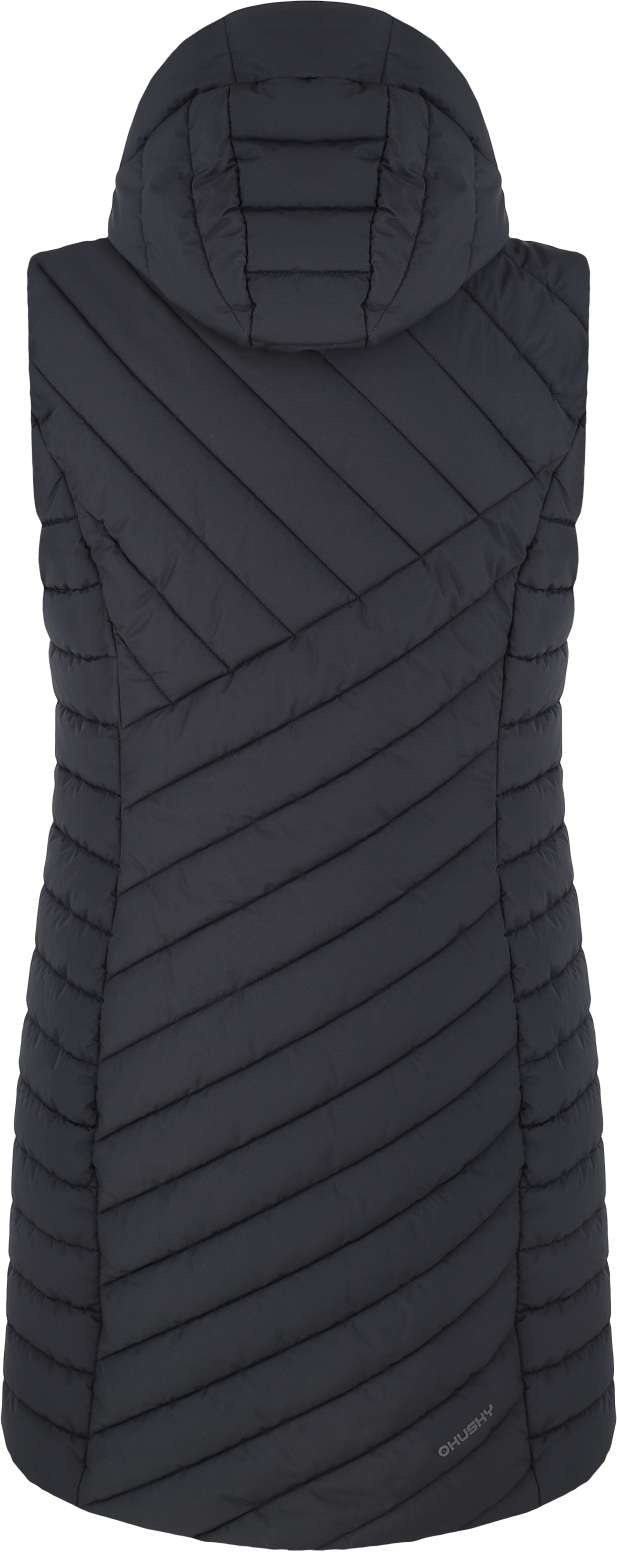 Dlouhá dámská prošívaná vesta s kapucí NAPI L je kousek, který ti v šatníku nesmí chybět. Pohodlná a zateplená vesta s podšívkou a membránou Husky Tech 7 000 tě bude doprovázet na procházkách městem i při různých outdoorových aktivitách. Vlastnosti: Prodyšný a voděodolný materiál HUSKYTECH 7 000 s membránou s vodním sloupcem: 7 000 mm H2O a prodyšností: 5 000 g/m2/24 h. DWR vodoodpudivé vnější ošetření vrchní vrstvy materiálu oděvu zabraňuje prosakování vlhkosti a voda tak okamžitě odtéká po povrchu ve formě kuliček.