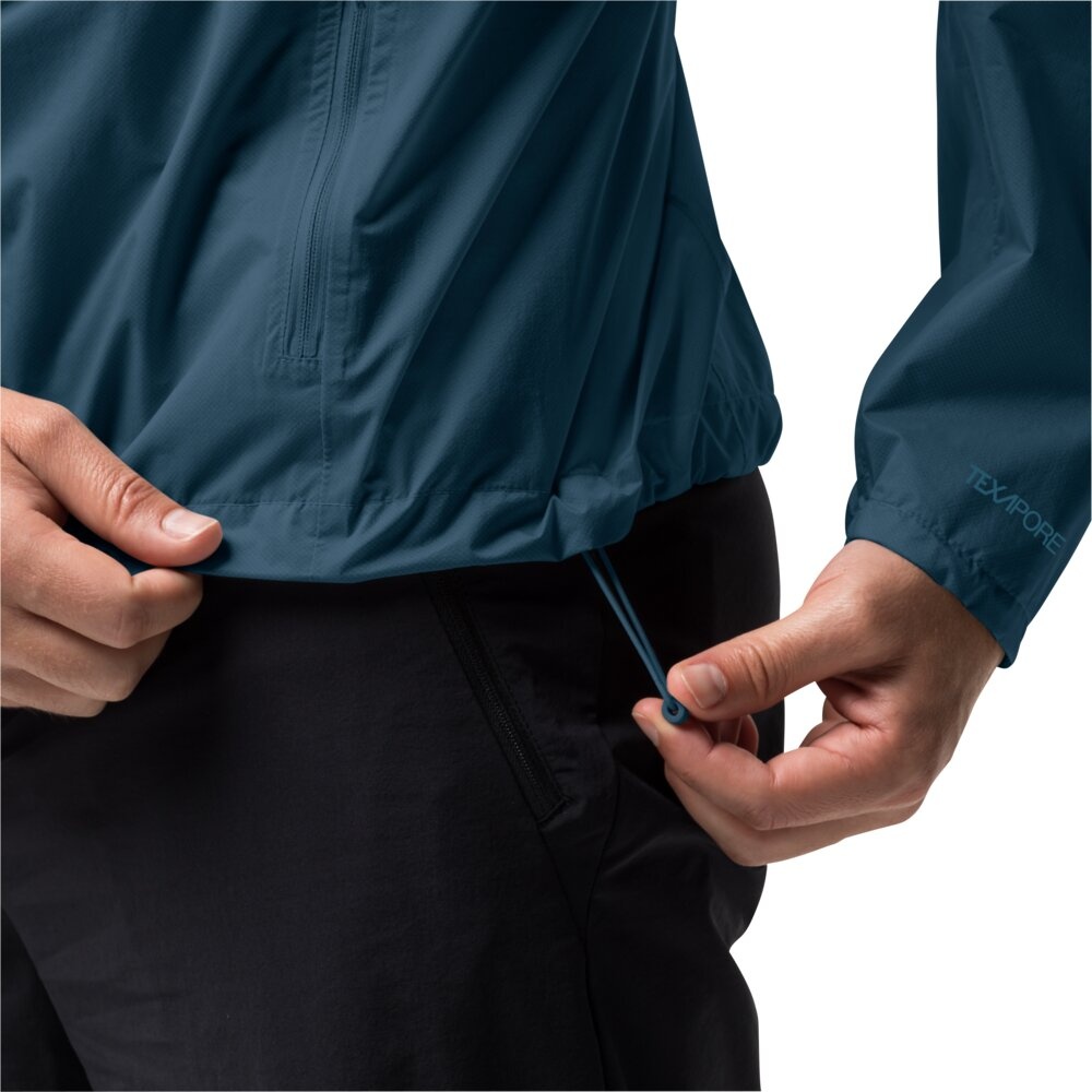 Ideální záložní bunda. Ultralehká turistická bunda PRELIGHT 2,5 l. Sbalí se do malých rozměrů, takže pro ni vždy najdete místo ve svém batohu. Díky 2,5vrstvé tkanině TEXAPORE PRO je bunda voděodolná, větruodolná a prodyšná. Malé nezbytnosti na stezku, ke kterým byste se mohli rychle dostat, lze schovat do dvou kapes na zip. Kapuce a lem jsou plně nastavitelné. Kapuce má také velký kšilt, který chrání váš obličej před deštěm.