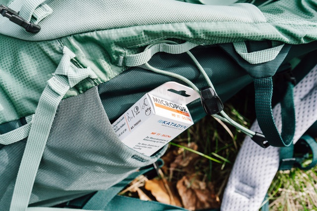 Desinfekce KATADYN Micropur forte MF 1T je unikátní kombinovaný přípravek pro účinnou dezinfekci pitné vody. Je vhodný pro jakýkoliv typ rodinných a obchodních cest a rekreačních pobytů. Současně se často používá při cestování do exotických destinací a profesionálních expedicích. Přípravek je zvláště indikován při cestování do zaostalých regionů s nerozvinutým hospodářstvím a do zemí substropického a tropického pásma. MICROPUR Forte využívá technologii aktivního chlóru a stříbrných iontů. V důsledku vysokého dezinfekčního účinku zbaví vodu do 30 minut bakterií a virů a současně zdezinfikovanou vodu konzervuje až na dobu 6 měsíců. Za 120 minut dokáže eliminovat velmi odolné prvoky jako např. Lamblie (Giardia Intestinalis). Použití přípravku MICROPUR je velice snadné – stačí pouze vhodit adekvátní počet minitablet do sklenice, lahve, kanystru či zásobníku s vodou určenou ke konzumaci, nechat rozpustit a působit po dobu 30 minut (resp. dvou hodin). S použitím přípravku MICROPUR Forte MF 1T nejsou spojena žádná zdravotní rizika a takto přpravenou vodu lze použít ke konzumaci, mytí nádobí nebo osobní hygieně. Přípravek vodu zbavuje jak choroboplodných zárodků, tak i řas a zápachu. MICROPUR eliminuje riziko infekcí z vody pochazející ze špatně udržovaných studní, veřejných vodovodních sítí (hotely a ubytovací zařízení) nebo z přírodních zdrojů vody jako jsou prameny, horské potoky, apod. MICROPUR Forte může zanechat jemnou chlorovou příchuť a při vaření nebo přímé konzumaci vody je proto vhodné upravit chuť vody přípravkem MICROPUR Antichlorine. MICROPUR Forte je vhodný i pro kemping a letní tábory v České republice. Přípravek splňuje veškeré náležitosti stanovené vyhláškou č. 409/2005 Sb. o hygienických požadavcích na výrobky přicházející do přímeho styku s vodou a požadavky zákona č. 258/2000 Sb. o ochraně veřejného zdraví. Ministerstvo zdravotnictví ČR vydalo k 1. červnu 2009 povolení k uvedení přípravku Micropur Forte MF 1 T na český trh. Balení obsahuje 100ks tablet v blistrech po 25ks, dávkování 1tb/1l upravované vody.